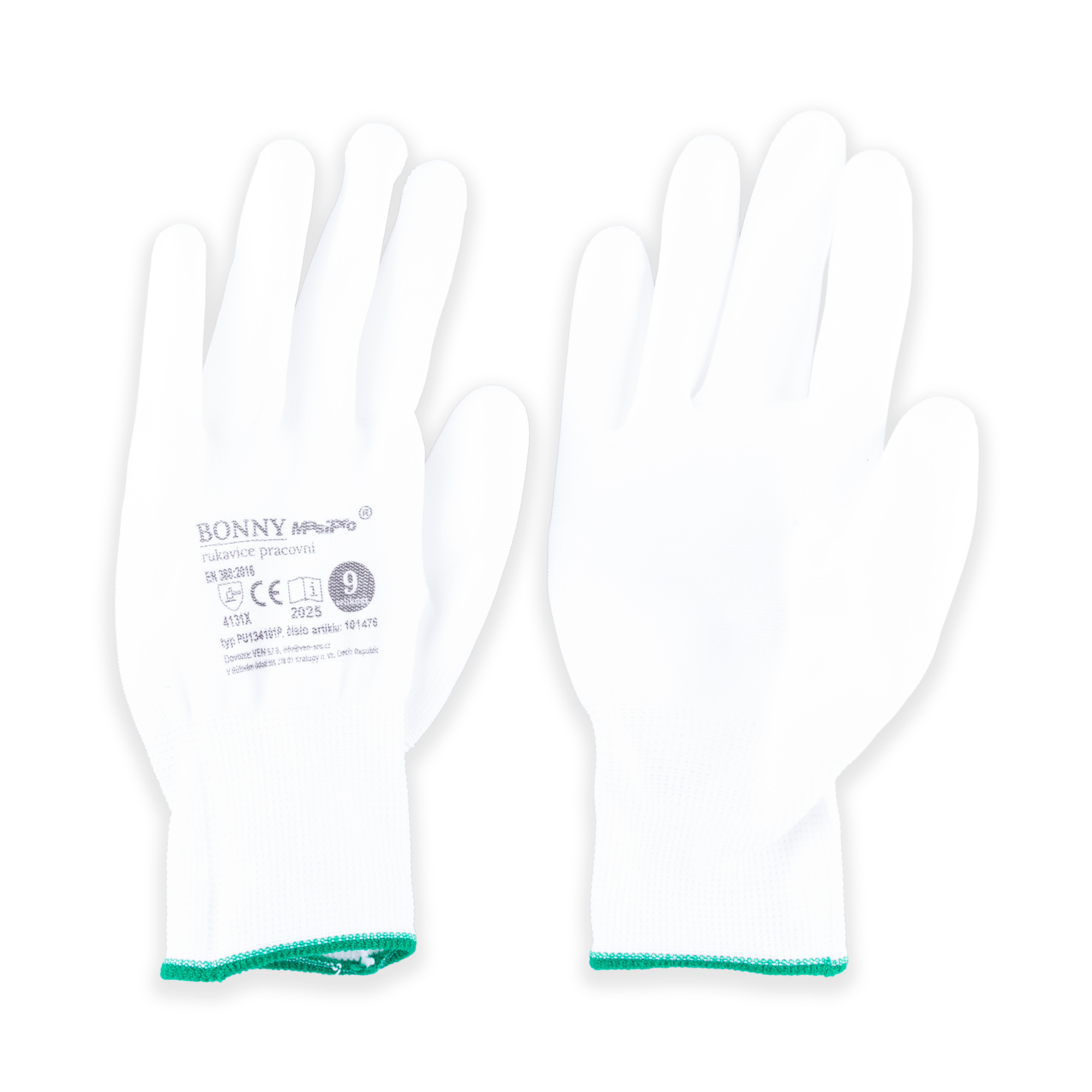• bezešvý polyesterový úplet s pružným nápletem na zápěstí, dlaň a prsty povrstveny tenkou vrstvou polyuretanu